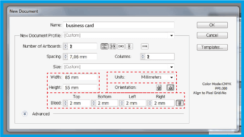 .Nell'opzione , posiziona 2mm (è consigliabile posizionare questa dimensione per qualsiasi documento che si crea).