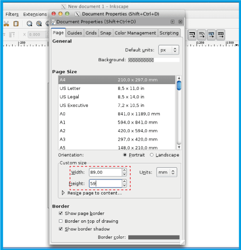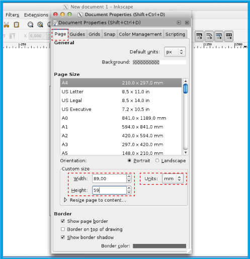 .Assicurati di aggiungere 4 mm (0.4 cm) all'altezza e alla larghezza del documento. Nel caso del biglietto da visita 8.5x5.5 cm inserire 8.9x5.9 cm.
