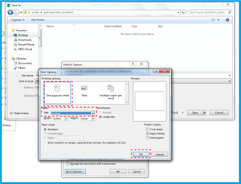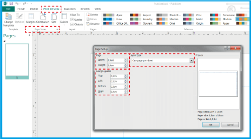 .Assicurati di aggiungere 4 mm (0.4 cm) all'altezza e alla larghezza del documento. Nel caso del biglietto da visita 8.5x5.5 cm inserire 8.9x5.9 cm.