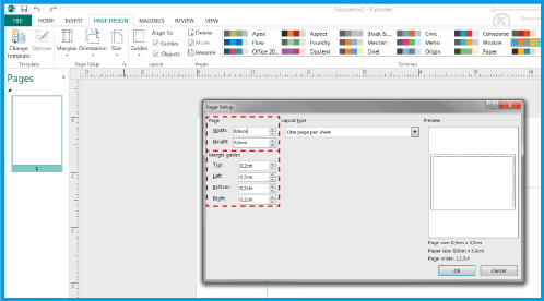 .Vai alla (freccia destra). Si aprirà una finestra (immagine sotto) dove è possibile definire le impostazioni del documento.