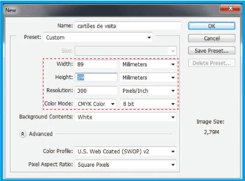 1.1 .Vai a File> Nuovo . Si aprirà una finestra (immagine sotto) dove è possibile definire le impostazioni del documento.