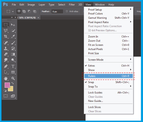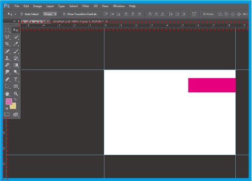 2.1 .Aumenta la dimensione del Canvas applicando le linee guida ai bordi del documento. Se non hai linee guida visibili, vai a Visualizza e scegli Righelli .
