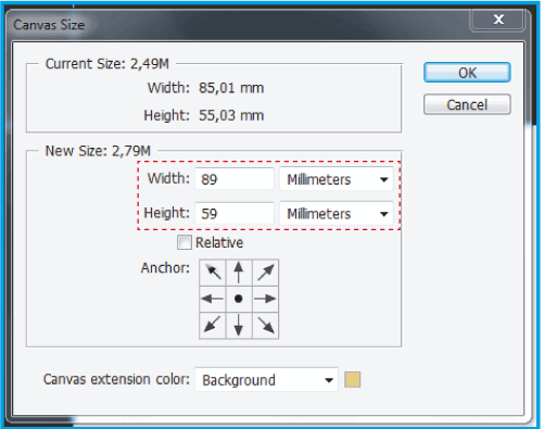 1.2 .Aggiungi altri 4 mm all'altezza e alla larghezza in modo che il tuo documento abbia margine sufficiente per il taglio.